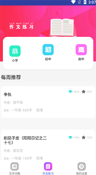 3、而且我们还能点击作文练习学习一些别人写的优秀作文提升自己!