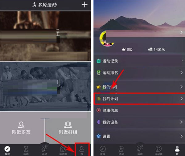 1、打开多锐运动,点击右下角的【我】,然后点击下方的【计划】