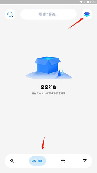 2、在频道中用户可以加入直播频道进行观看,点击右上角添加直播源;