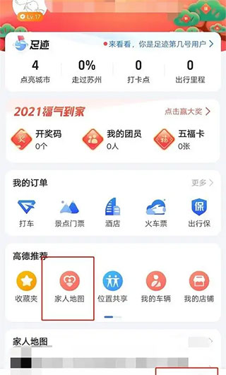 点击家人地图打开高德地图,点击我的,点击家人地图。