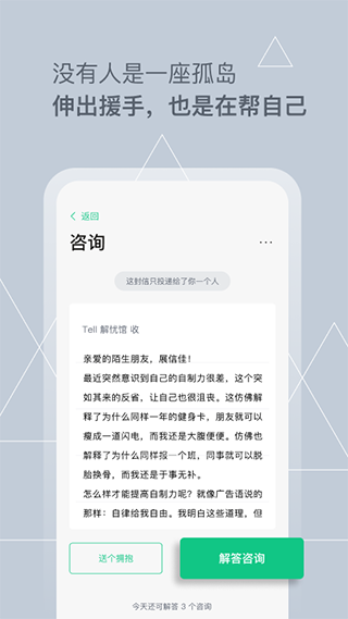 Tell解忧杂货店是一款提供心理疏导和情感支持的社区聊天交友软件,在Tell,你可以不必顾忌现实生活中的身份,却又可以尽情的抒发真实的情感,表达一些在现实生活中羞于表达的感情,用户可以记录自己的情感变化和心情,通过写日记的方式释放内心的压力,还可以参与各种情感测试,了解自己的情感需求和困扰,通过测试结果找到合适的解决办法,情感日记、情感测试、在线心理咨询等各种功能,旨在帮助用户解决内心的困惑和焦虑,找到情感的出口和解决方案,帮助用户走出情感困境,重建自信和内心平衡!