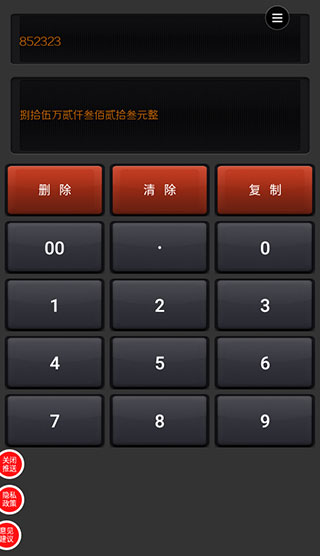 数字大写转换器APP免费版是一款方便快捷的工具软件,可以将人民币金额转换为中文大写形式。无论您是在写报告、填写表格、或者进行财务管理,该APP都能帮助您快速准确地将数字金额转换为对应的中文大写形式,避免因数字金额表达不清而产生的误解或错误。操作简单,只需输入数字金额,点击转换按钮即可得到对应的中文大写形式,方便实用。无论您是个人用户还是企业用户,数字大写转换器APP都是您不可或缺的助手,让您的数字金额转换变得轻松便捷。