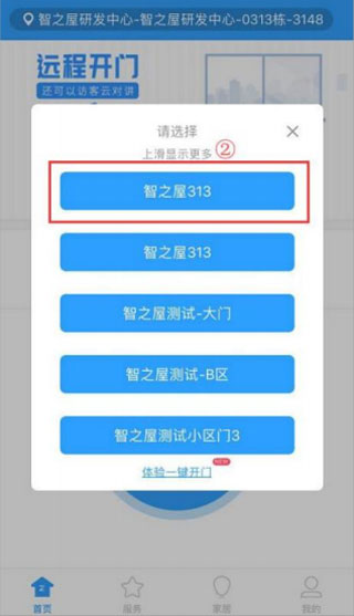 远程开门1、点击中间开门按钮