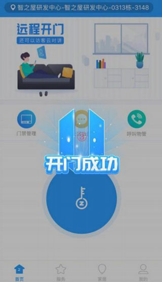 智之屋APP是移动互联网与传统楼宇对讲、监控产品的完美结合,软件具有实时云对讲、远程开门等功能,用户通过APP可以随意远程控制智能家具设备,可实现无时间、地点、距离限制的高清可视云对讲和远程一键开锁,软件还提供了超多便捷的社区服务功能,如报修服务,便民电话,医疗服务,小区超市,物业缴费, 家政预约,外卖等,为大家的生活带来更多的便利!