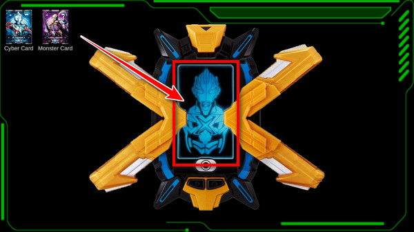 7、然后就可以插入艾克斯奥特曼卡牌了,选择第一张艾克斯奥特曼卡牌,大喊“艾克斯前辈!请把力量借给我吧!”