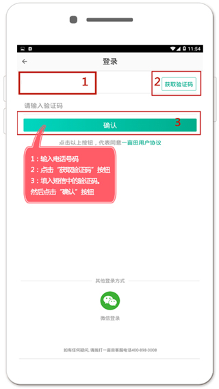 第二步:输入手机号码点击获取验证码,输入验证码点击“确认”