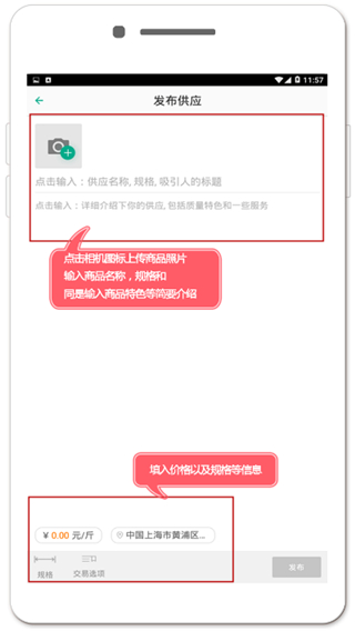第二步:点击“0元开店”后进入“发布供应”界面,按照下方红色方框部分的提示,详细填写相关内容