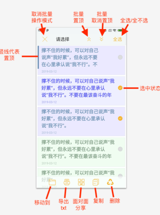 ● 长按首页的任意一条便签,进入批量操作模式,如下图