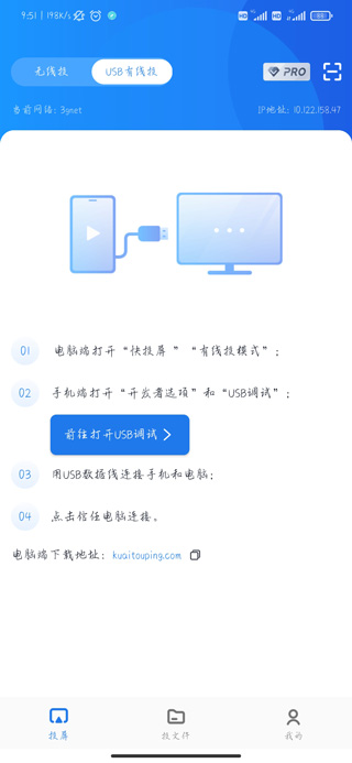 -有线投屏:电脑端打开“投屏大师”有线投屏模式,利用USB数据线即可连接。