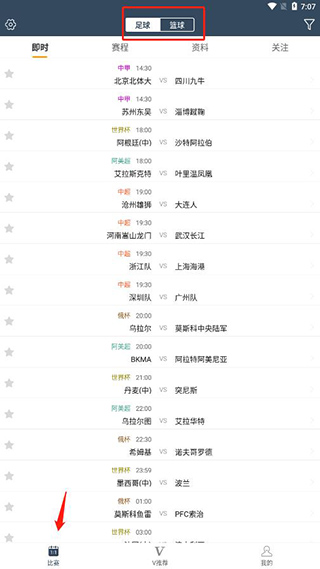 2、打开比赛后,右上角有一个五角星,点击收藏;
