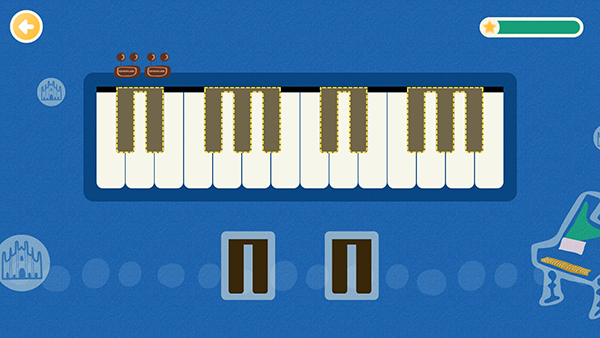5、点击玩一玩,可以进入钢琴配对小游戏,将黑色的琴键拖动到对应的钢琴图案上。