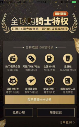 全球购骑士卡app软件亮点