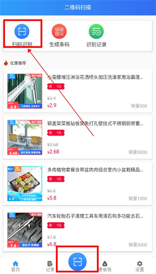 1、在本站下载安装该软件,点击“扫码识别”或者点击首页下方的扫描图标,直接就可以扫描任何码,无论是条形码还是二维码统统可以!