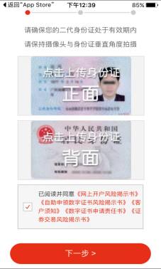 扫描身份证(注意必须在框内),正反面都需要上传,完成后点下一步