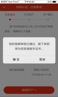 业务员视频认证完成后自动弹出以下界面,安装数字证书,点“确定”。