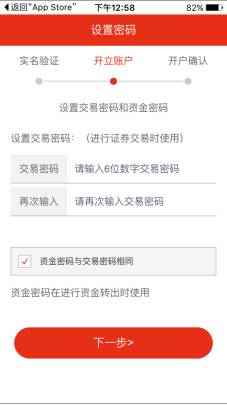 设置账户的交易密码(点下一步),密码要记牢,忘记比较麻烦。