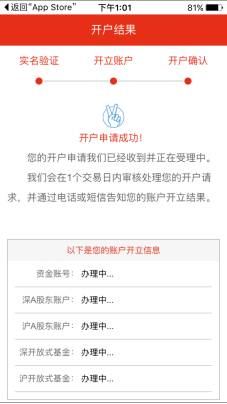 等待次日短信告知开户申请结果。