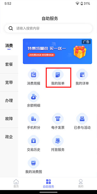 9、账单查询:提供当月实时话费及套餐查询,以及最近6个月的历史账单