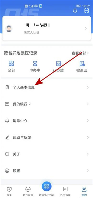 进入到国家医保服务平台首页,点击右下角的【我的】。