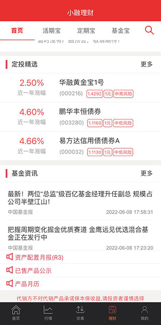 5、在理财一栏中,可以进行相应的理财活动