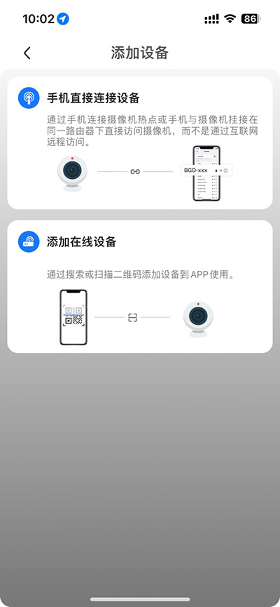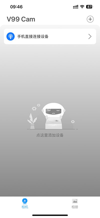 1、在相机页面可以选择手机直接连接设备,也可以点下面的添加设备;