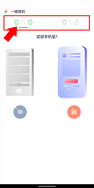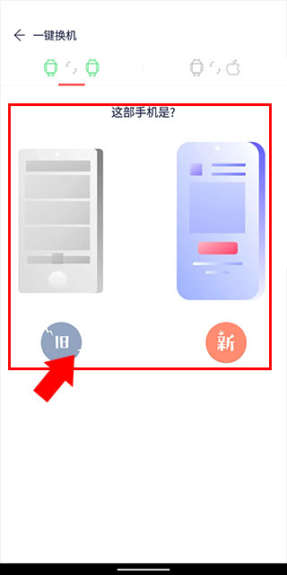 5、选择之后,点击下方选择该手机是传文件的旧手机还是接收文件的新手机,并且另外一部手机也按照前方步骤操作