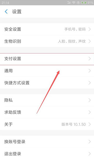 3、在设置界面,找到“支付设置”点击进入