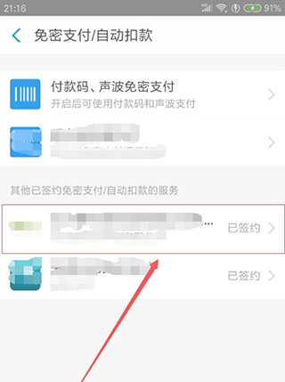5、然后在免密支付/自动扣款界面里,我们找到要解除自动续费项,点击进入