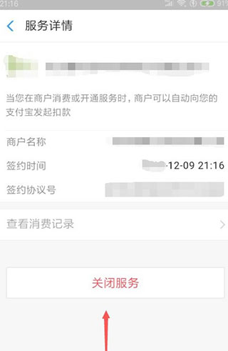 6、最后出现“关闭服务”继续解约后就解除了,就不在自动续费了。