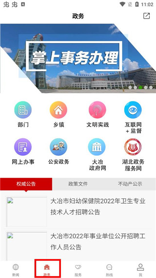 2、【政务办事】:政务信息发布,政务事务办理。