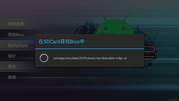 3、打开模拟器,点击开启BIOS,会自动查找定位手机里游戏镜像文件的位置。