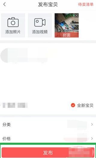 5、来至此卖页后,点底下的红栏就能将此发布了,期间可到这改类价或再放图的