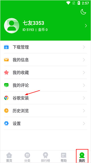 2、点击我的谷歌安装;