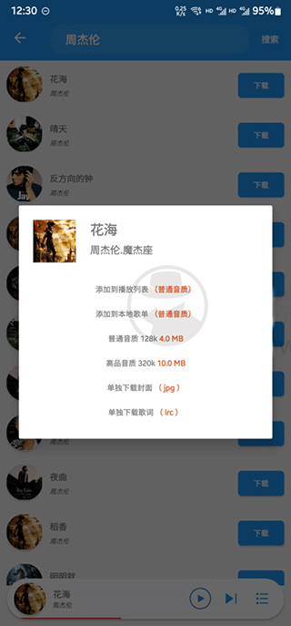 2、除了音乐的在线试听,下载当然也是没有任何问题的,支持普通音质和高品质的下载。