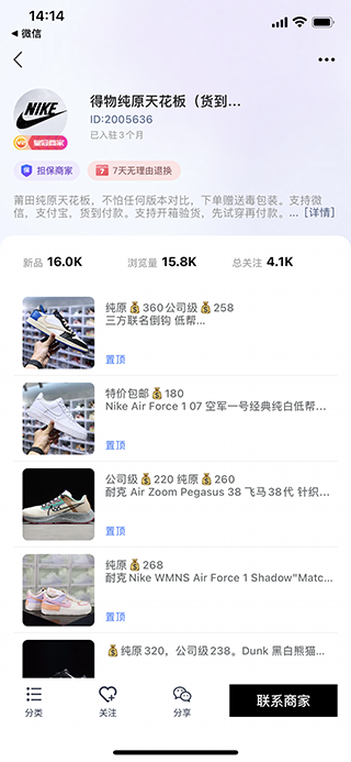 2、点击想了解的商家,可以查看鞋子价格和款式以及详细的图片信息。