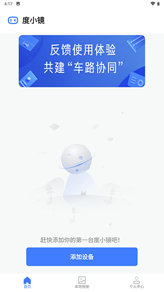 2、进入首页后点击绑定设备,与您的车辆百度后视镜绑定。