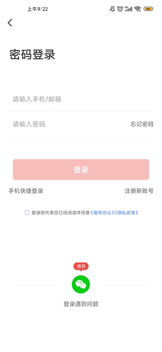 4、忘记密码的学员,在登录/注册页面,点击【忘记密码】按钮,通过手机短信验证码,即可重置登录密码。