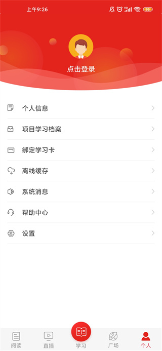 6、点击导航栏【个人】,进入个人空间,可以查看个人信息、项目学习档案、离线缓存、帮助中心、系统消息、设置等。
