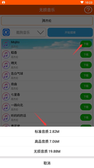6、支持下载QQ音乐m4a、mp3普通品质、MP3高品质、ape和flac格式