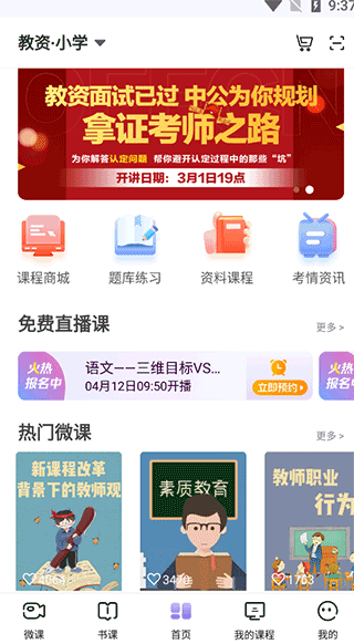 软件专为教师资格证考试而制作,软件拥有微课视频,考试资讯,图书讲解。接下来小编给大家讲解大概的操作基本流程