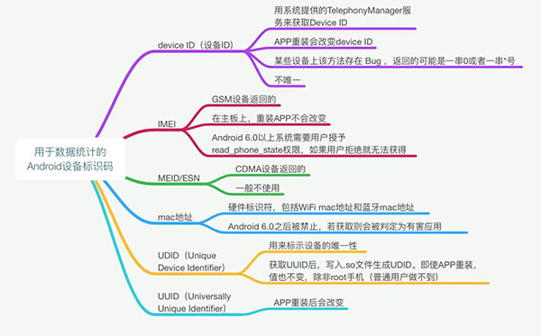 名词释义是不是看得一脸懵逼?莫慌,下图介绍了各个设备标识码的区别,以及目前的情况。