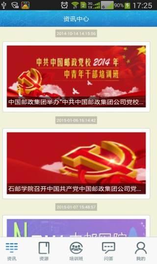 6.中国邮政网络学院移动客户端,为网院学员提供主题资讯的浏览、资源的查阅与学习、信息的交流及个人信息的查询。