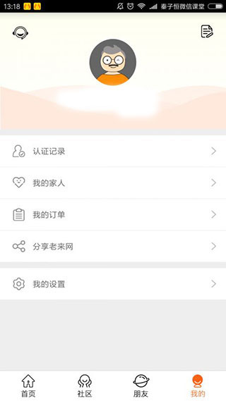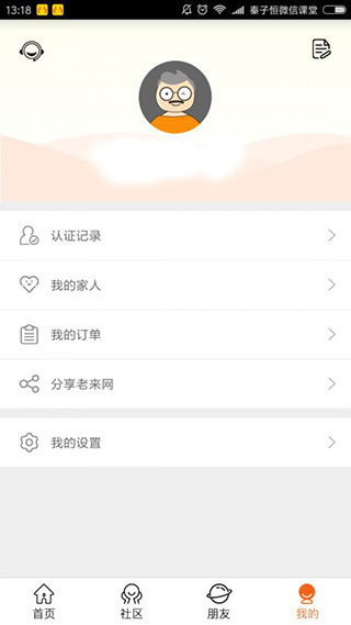 1、在老来网的app中,点击‘认证记录’,会进入到‘认证记录列表’;