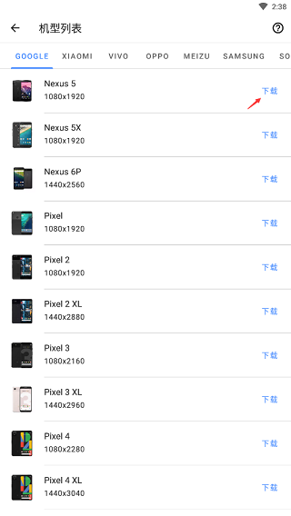 2、点击“下载”机型模板
