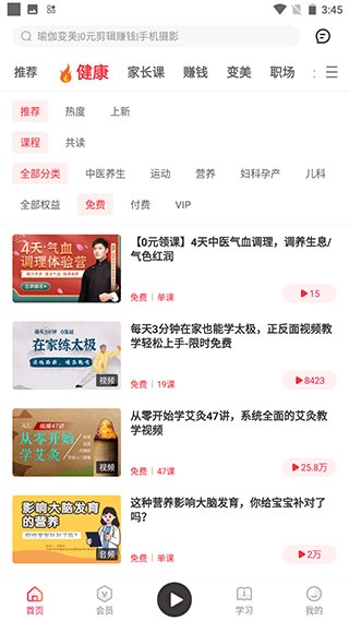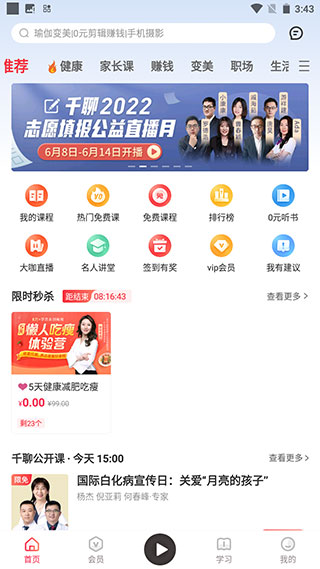 千聊APP最新版是一款能为用户提供海量精品课程的学习软件。无论你是想学习新的技能,提升职场竞争力,还是追求个人兴趣爱好,千聊APP都可以满足你的需求。千聊APP拥有丰富多样的课程资源。无论是语言学习、职场技能、健康养生还是艺术人文,千聊APP都提供了广泛的课程选择,满足用户不同的学习需求。千聊APP的课程由一线专业讲师授课。这些专业讲师拥有丰富的教学经验和专业知识,能够通过生动有趣的教学方式帮助用户更好地理解和掌握知识。千聊APP最新版是一款功能强大、资源丰富的学习软件,无论你的学习目标是什么,它都能为你提供合适的课程和学习方式,帮助你实现学习目标,拓展知识面。