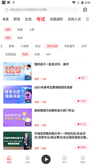 4、考试模块可以了解最近的关于考试的内容,志愿填报等。