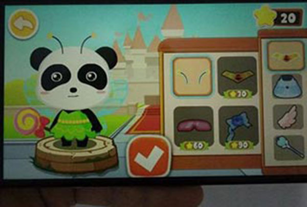 1、进游戏选择宝宝,装备漂亮的服装道具,等收集足够的星星开锁喜欢的服装和饰品。