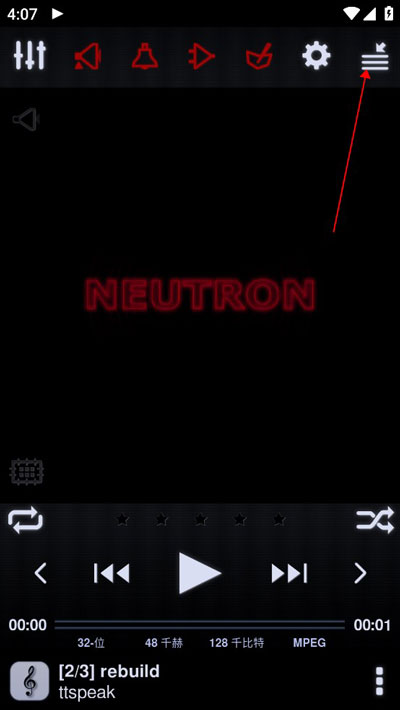 1、打开软件,进入播放器页面后点击右上角的三条横杠图标