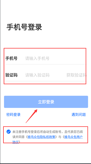 1、打开饿了么骑手app最新版,进行账号登录,新用户登录会自动生成账号,