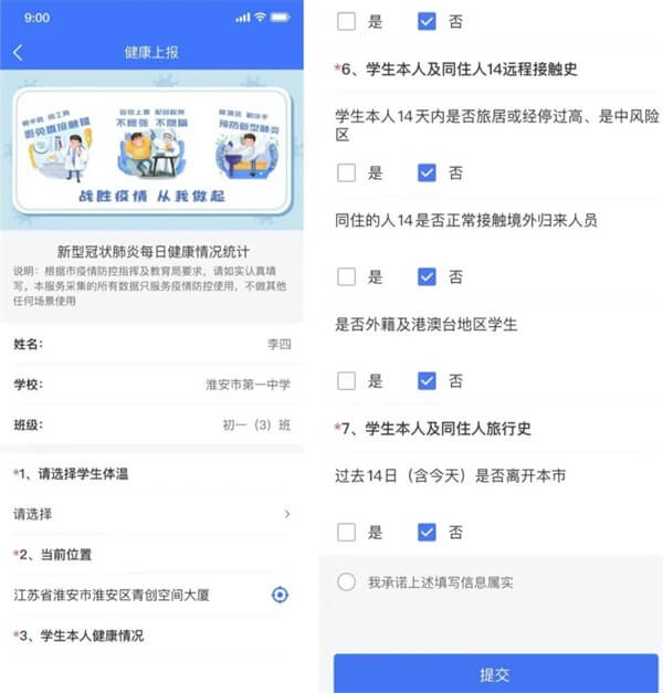 1、下载注册“i淮安”APP,点击首页“学生健康填报”中“学生端”,如下图界面所示。